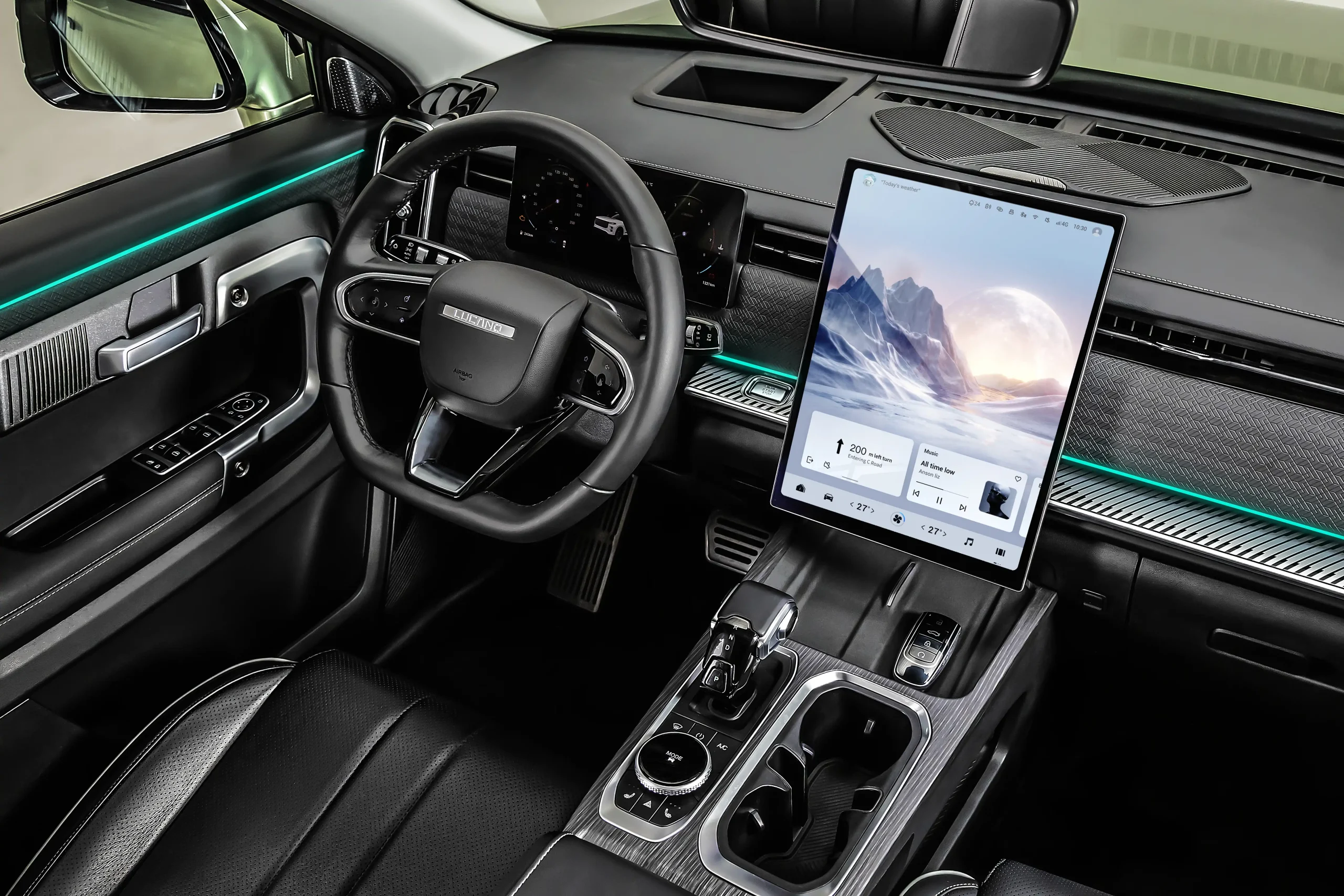 با ورود به کابین LUCANO L7، فضایی آرام و تکنولوژیک شما را احاطه میکند. طراحان داخلی با حذف دکمههای فیزیکی غیرضروری، تمرکز راننده را روی لذت رانندگی و مسیر قرار دادهاند.