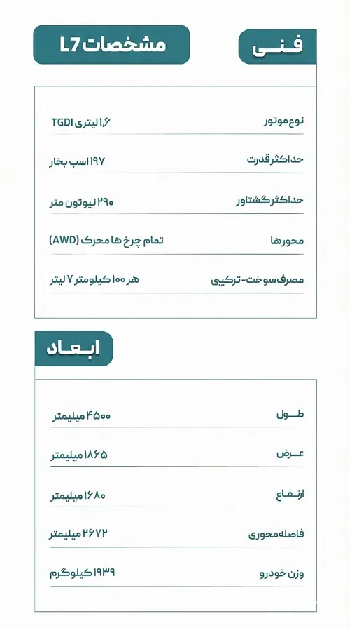 برای درک بهتر تواناییهای حرکتی و مهندسی لوکانو L7، باید فراتر از ظاهر خودرو به اعداد و ارقام نگاه کنیم. در جدول زیر، مهمترین پارامترهایی که این شاسیبلند را در کلاس خود متمایز میکند، مشاهده میکنید: